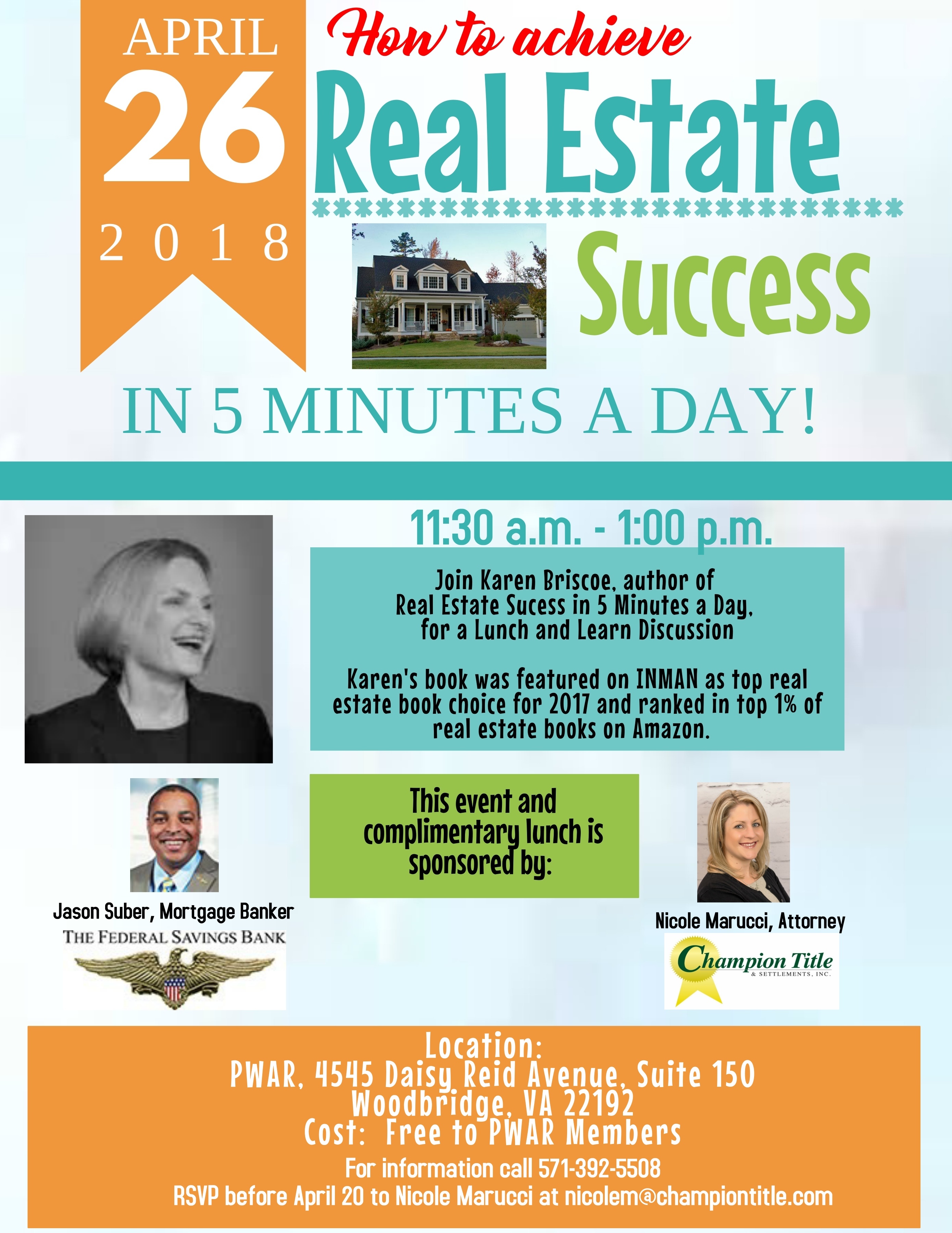 - Federal Savings Bank and Champion Title – Lunch and Learn: Woodbridge, VA – April 26, 2018